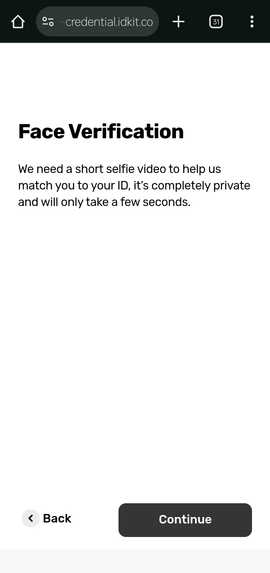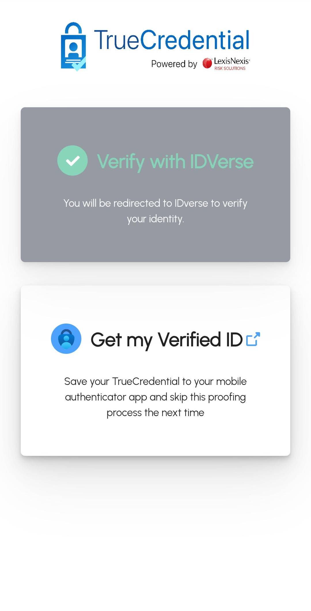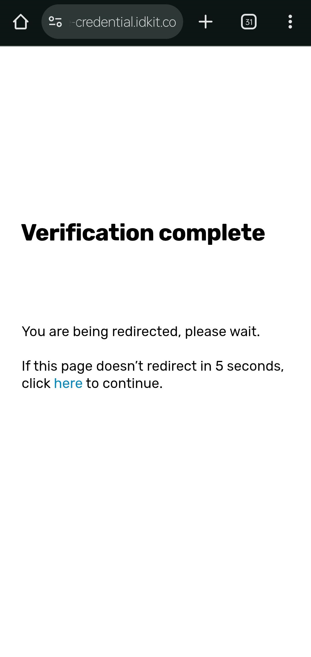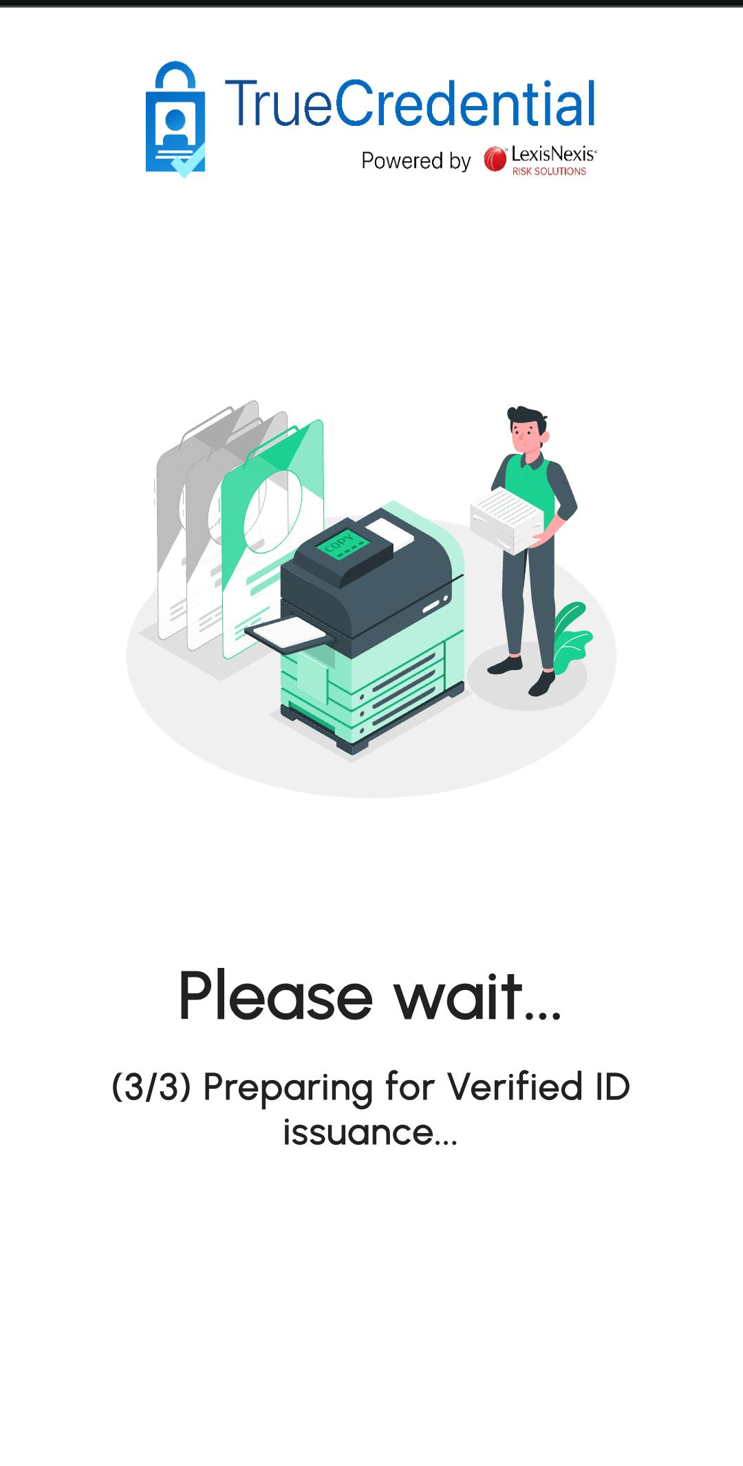 Your identity verification is now complete. You’ll be automatically redirected back to TrueCredential to continue the issuance process.