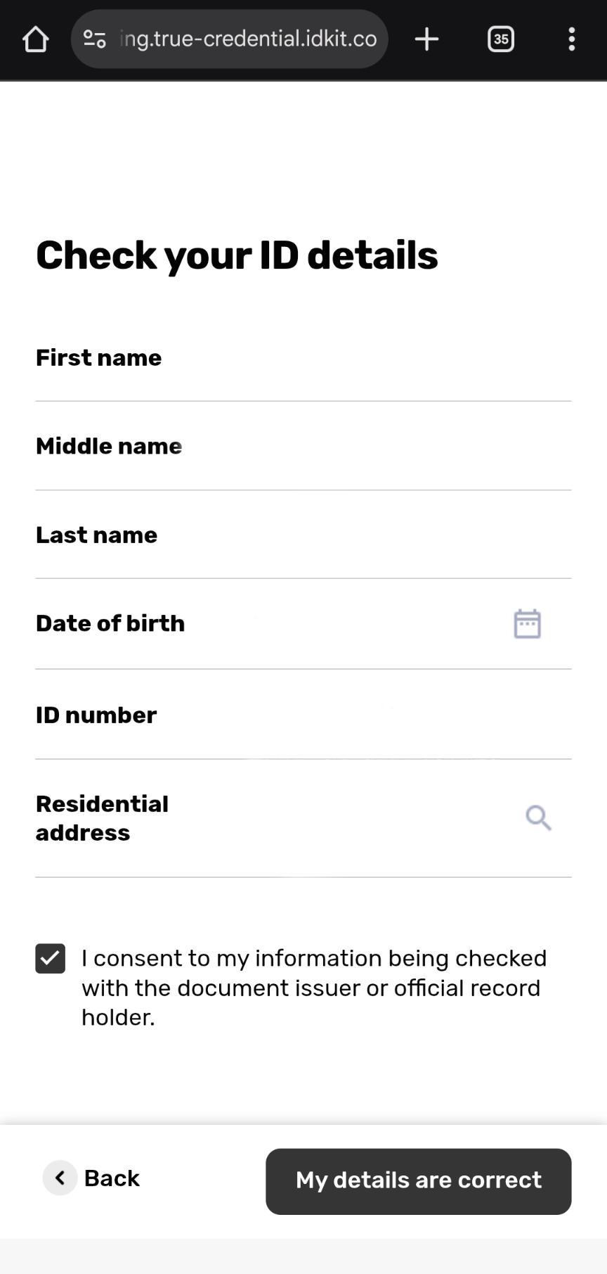 Review the extracted information from your ID document: